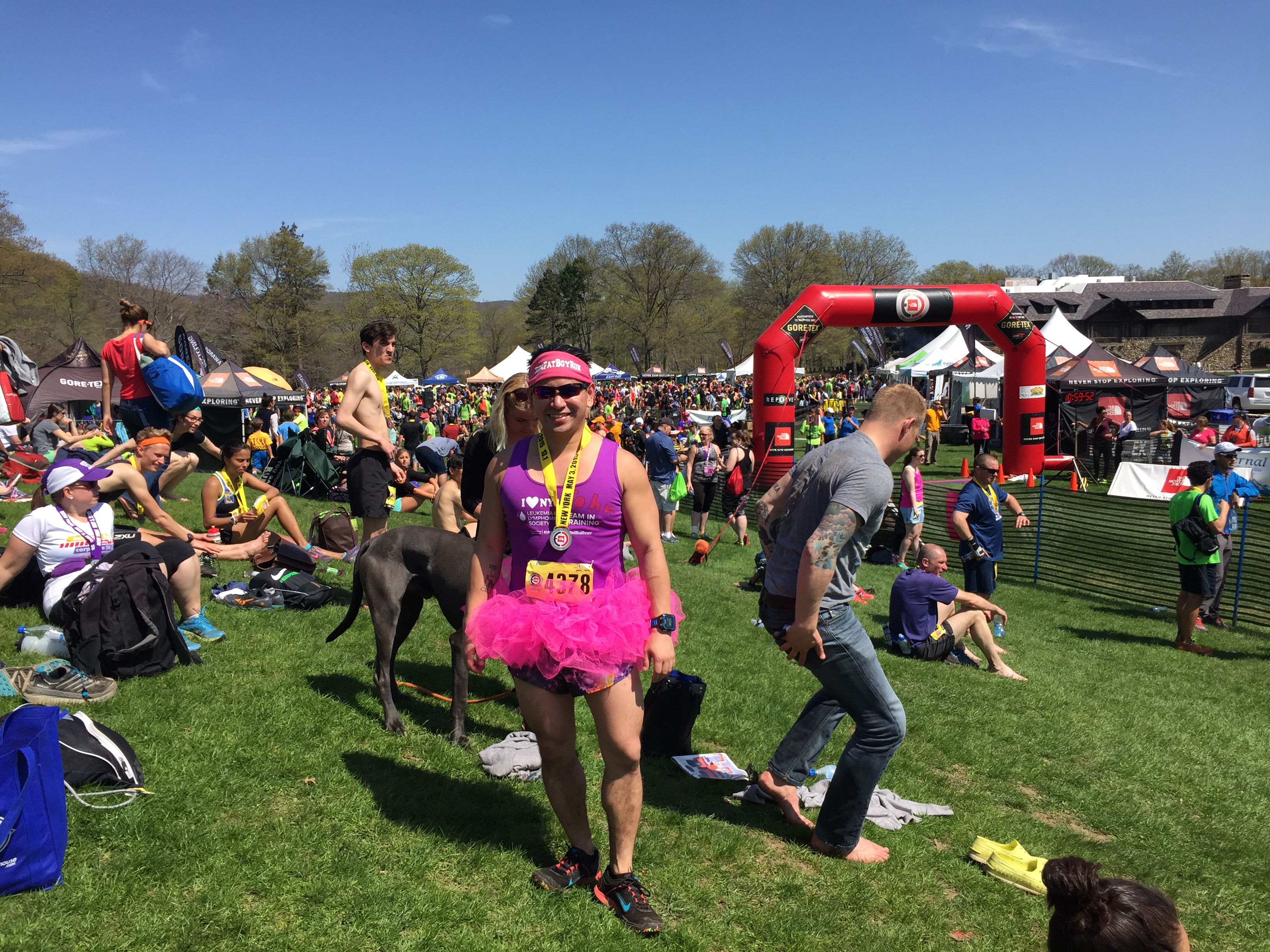 When I woke up this morning, I was not excited to race. I didn’t bounce out of bed as I normally do on race morning (well, let’s be honest, I don’t actually bounce out of bed on ANY morning except for Christmas), but I definitely did not feel the anticipation and excitement of race day. The reason for this is due to an incredibly tough (read: shitty) training block in April. Between feeling exhausted in the beginning of the month, and with me changing my nutrition plan in it’s entirety, I’ve had some incredible failures in training and in racing. I won’t even talk about what happened during the Hook Mountain Half two weeks ago, except for the fact that it was a massive disaster. So after stumbling out of bed and eating breakfast, I put on my race outfit (not including the pink tutu, which came later) and drove to the race with Alysen, not feeling overly excited.